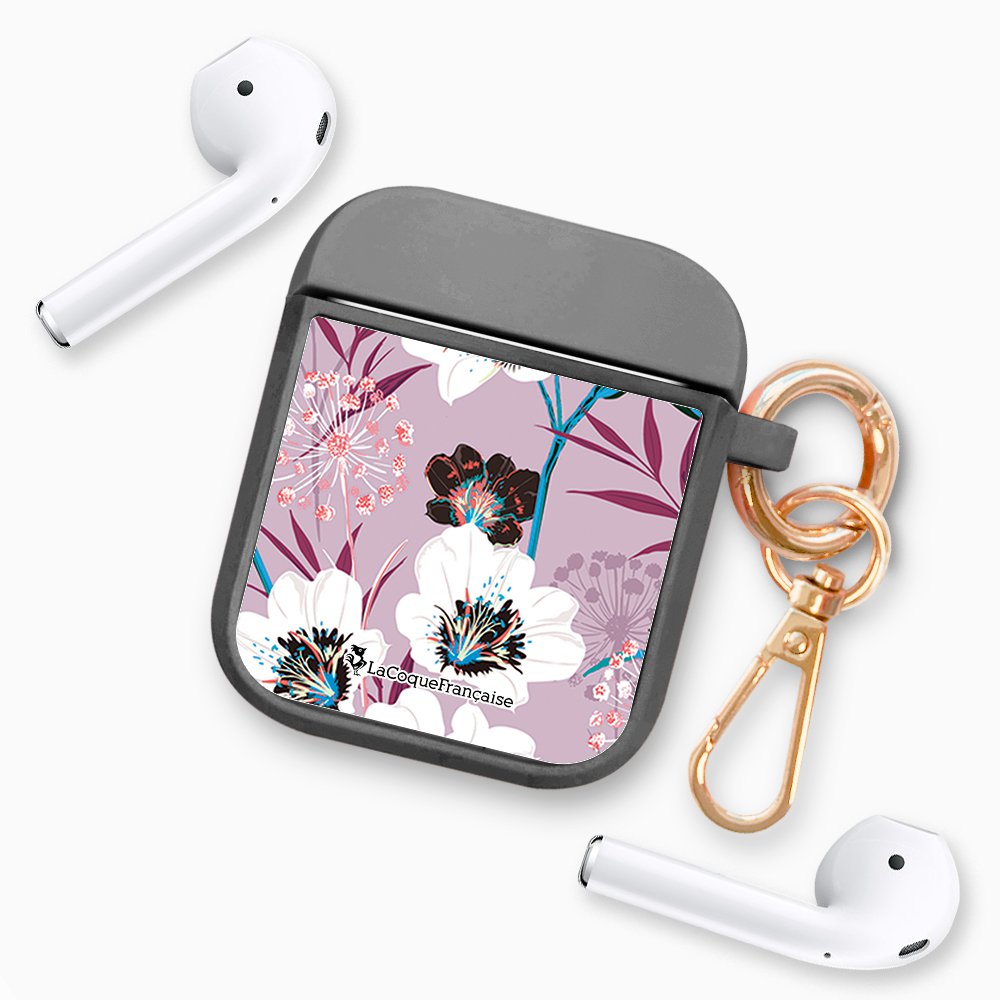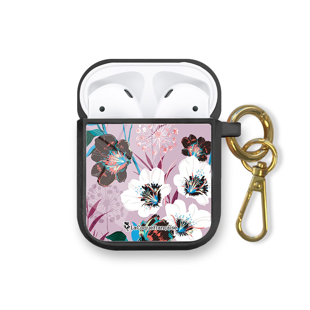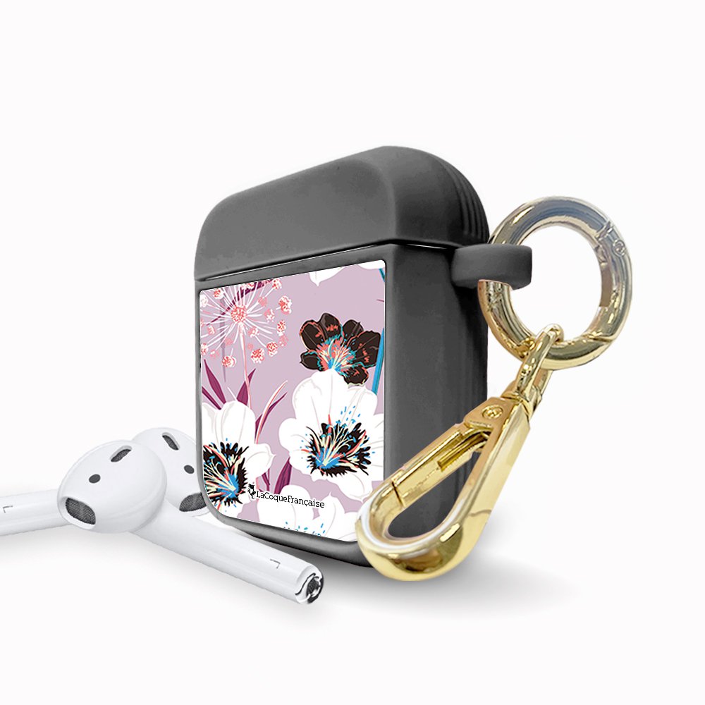 Housse pour airpods silicone liquide noir Fleurs parme Motif Ecriture Tendance La Coque Francaise