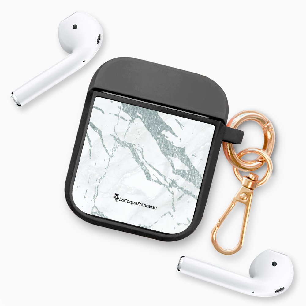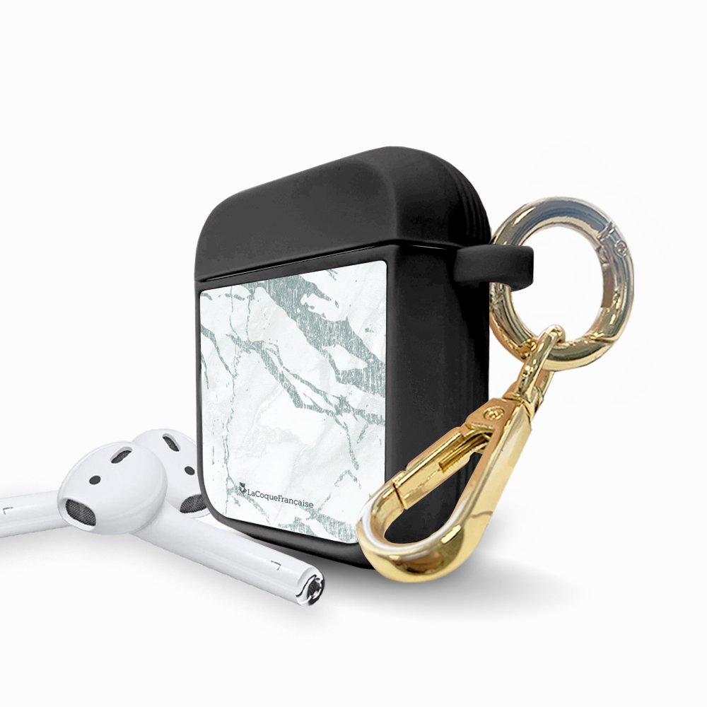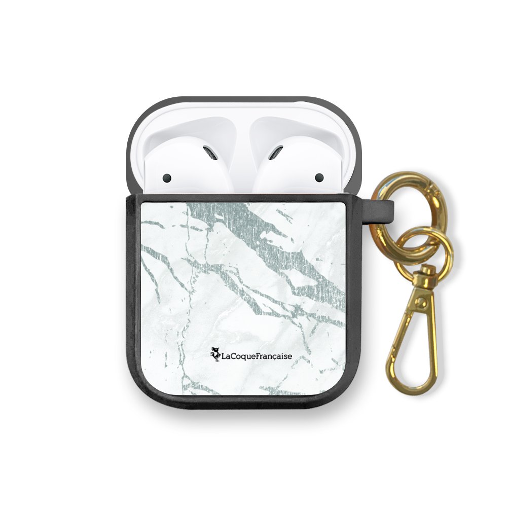 Housse pour airpods silicone liquide noir Marbre gris Motif Ecriture Tendance La Coque Francaise