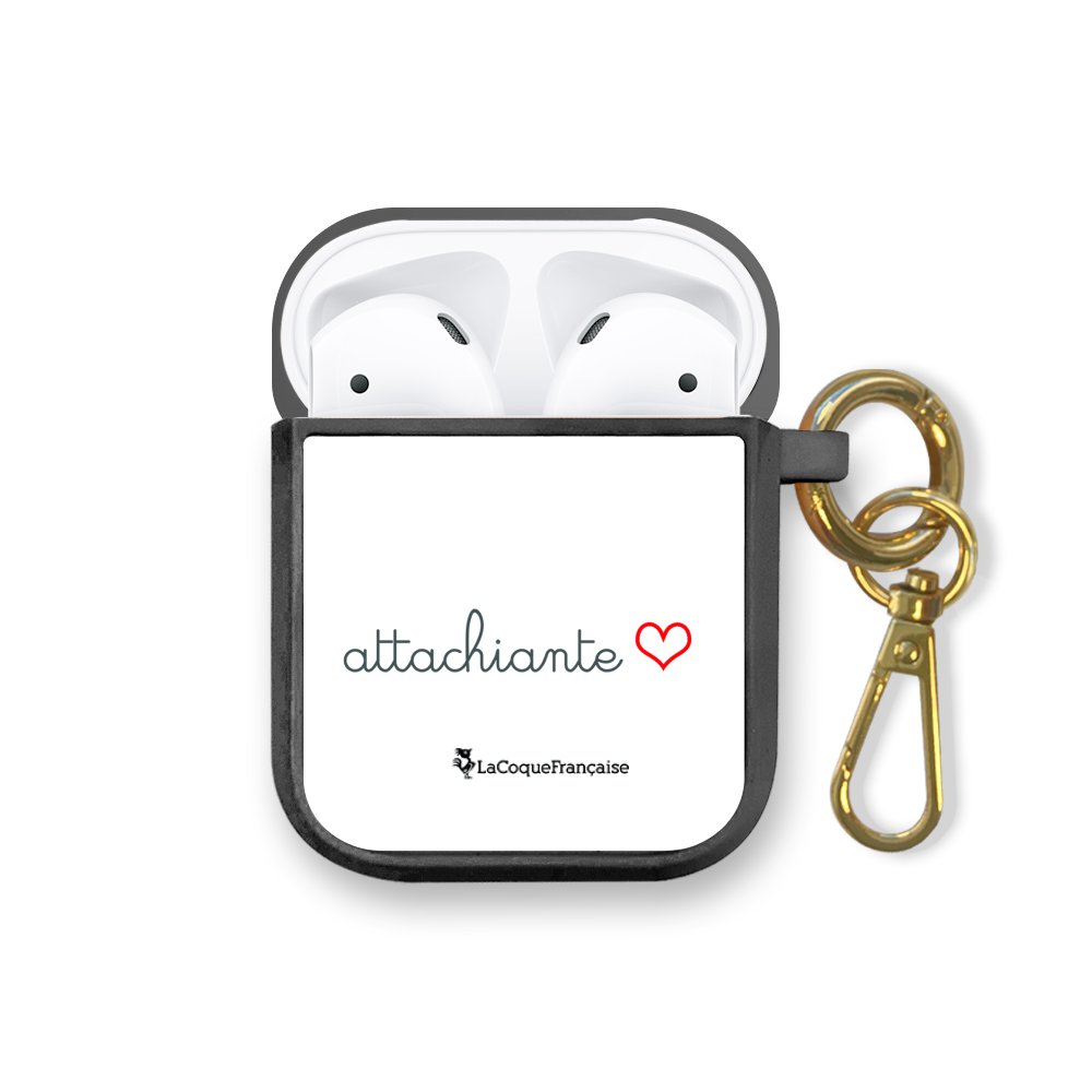 • Housse pour airpods silicone liquide noir Attachiante Motif Ecriture Tendance La Coque Francaise