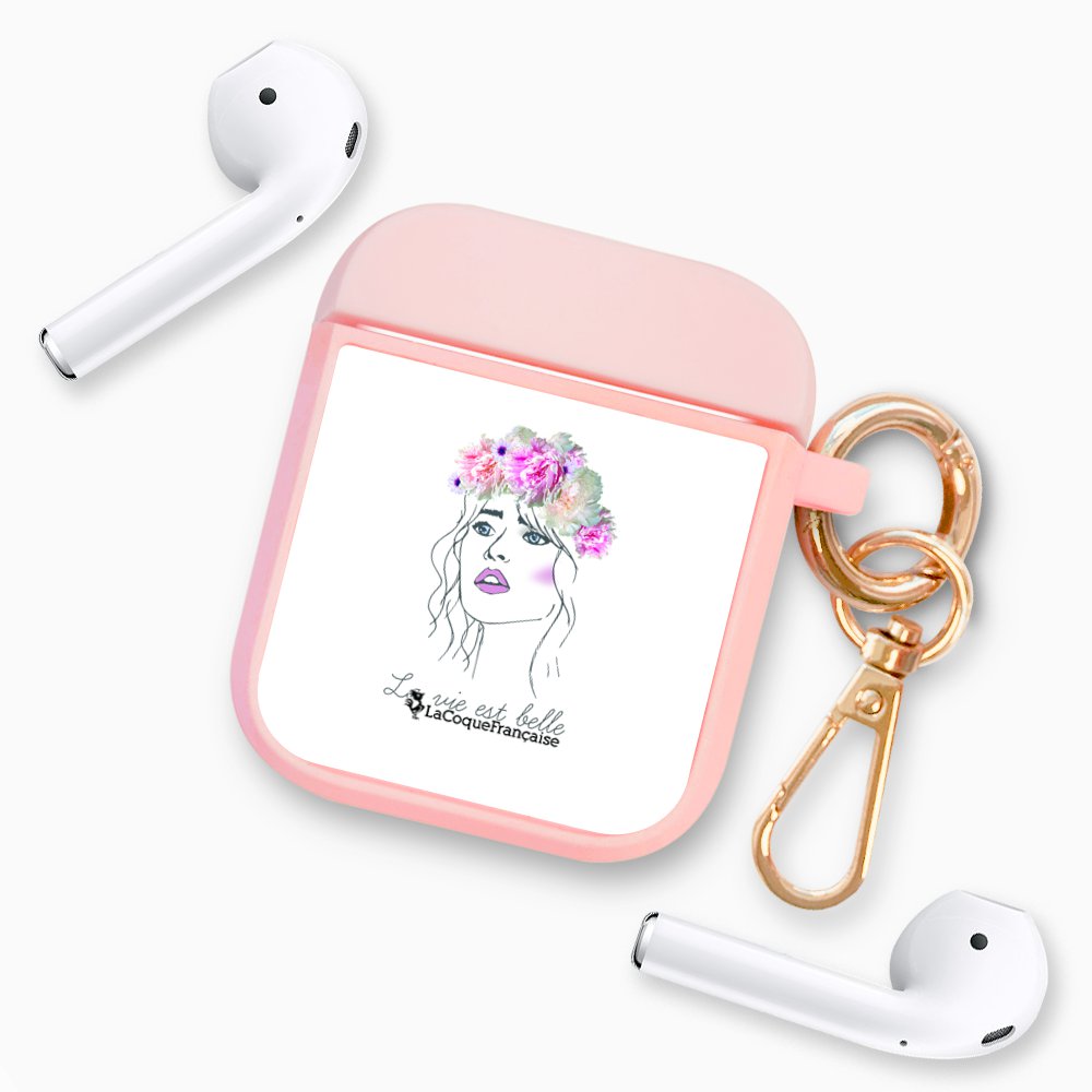Housse pour Airpods silicone liquide rose La vie est belle Motif Ecriture Tendance La Coque Francaise