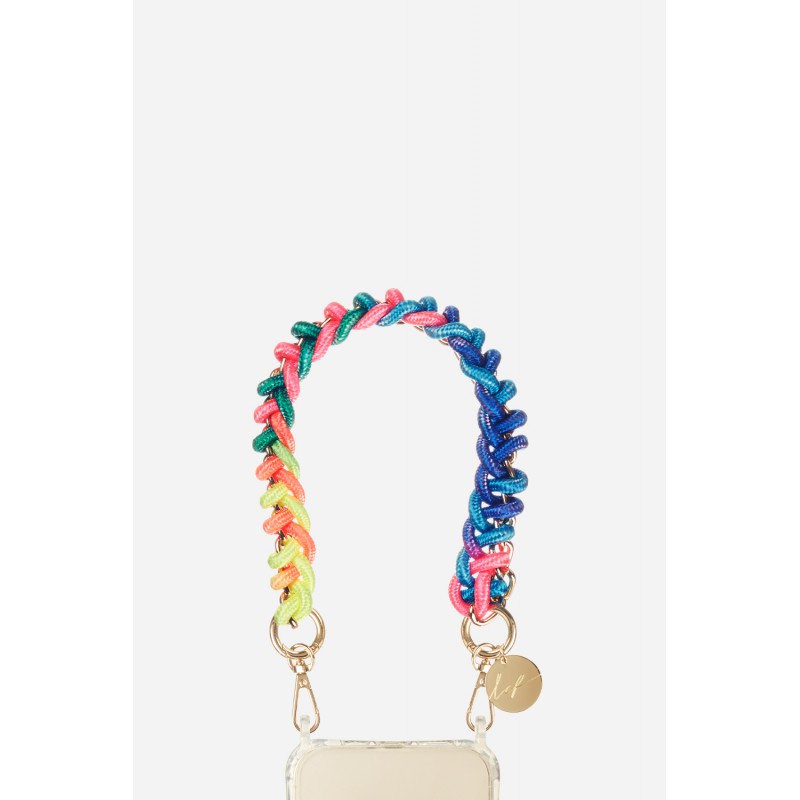 • > High Tech>Gadgets>Bijoux de téléphones>Bijoux de téléphone Romy avec mousquetons dorés 40 cm cordon tressé arc-en-ciel avec chaîne en metal