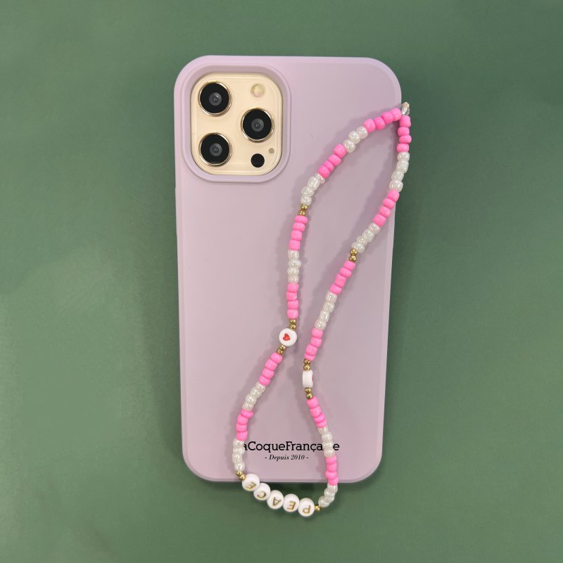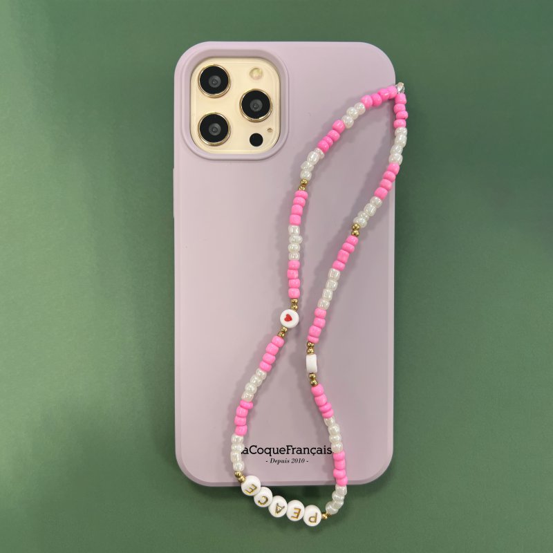 • Bijoux de téléphone LILA à accrocher à votre coque perles blanches et colorées - longueur 80 cm