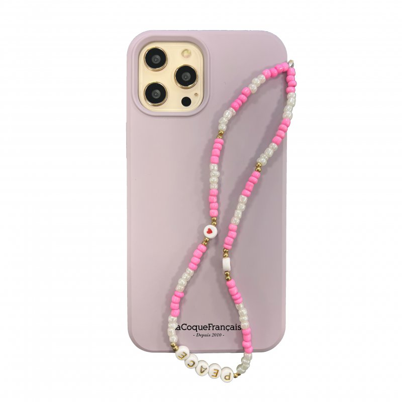 • Bijoux de téléphone Flore 30 cm perles mats rose avec mousquetons dorés