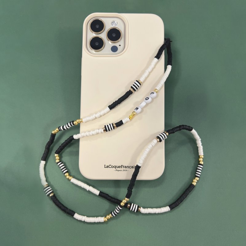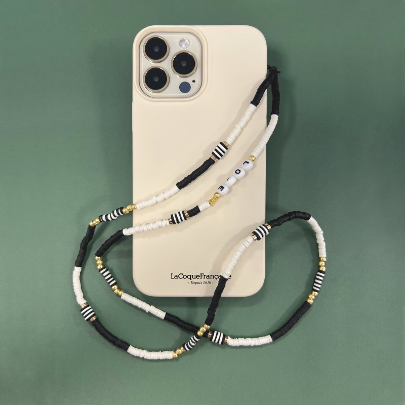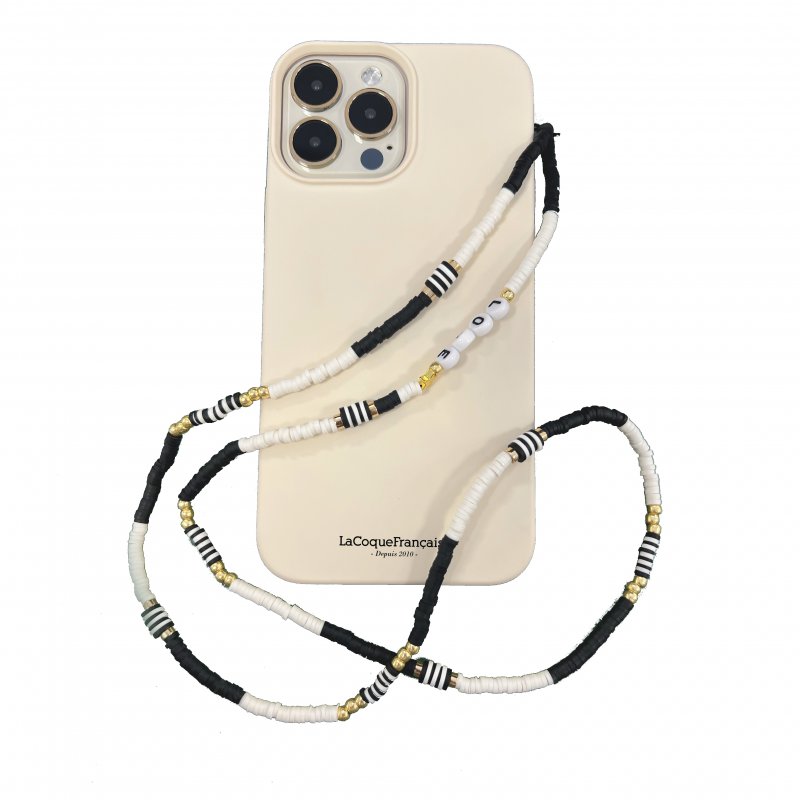 • > High Tech>Gadgets>Bijoux de téléphones>Bijoux de téléphone LOUISE à accrocher à votre coque perles blanches et noires - longueur 80 cm