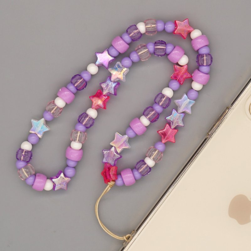 • Bijoux de téléphone LUCIE à accrocher à votre coque perles violettes - longueur 80 cm