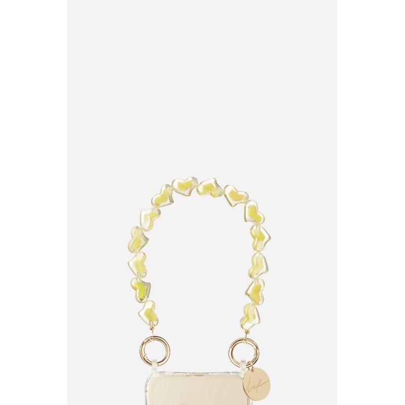 • > High Tech>Gadgets>Bijoux de téléphones>Bijoux de téléphone Livia 30 cm perles coeurs jaune avec mousquetons dorés