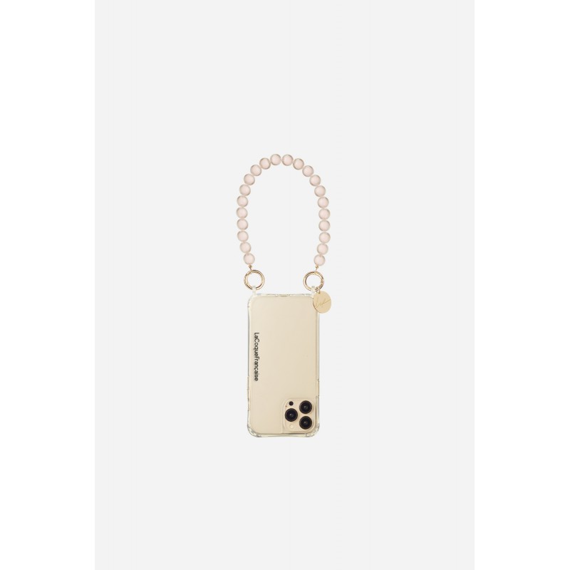 • Bijoux de téléphone Laury 30 cm perles transparentes avec mousquetons dorés