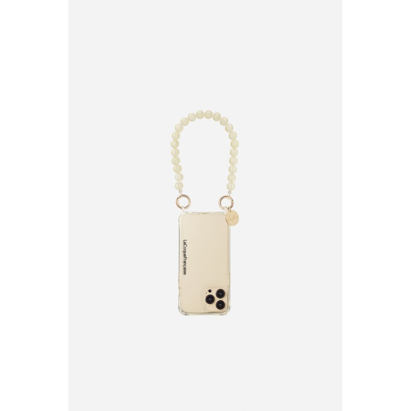 • Bijoux de téléphone Laury 30 cm perles transparentes avec mousquetons dorés