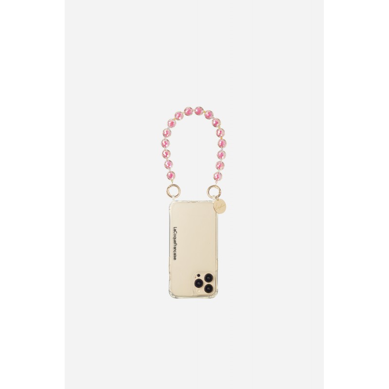 • Bijoux de téléphone Laury 30 cm perles transparentes avec mousquetons dorés