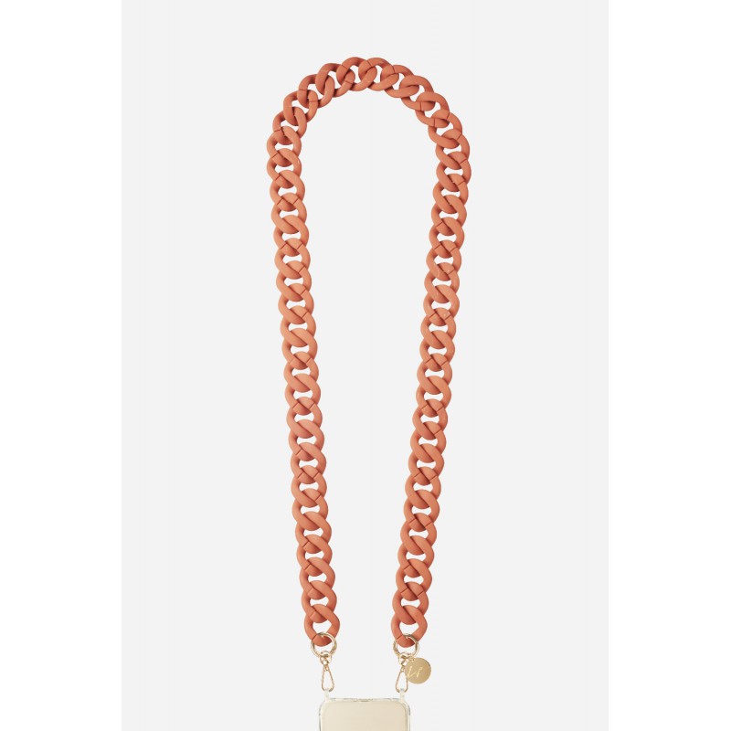 L'accessoire incontournable ! Plus besoin de chercher votre téléphone au fond du sac ou sur votre bureau, il vous suit de partout.Parfait pour avoir les mains libres tout en faisant autres choses, nos chaînes peuvent être portées en bandoulière ou en collier.Nos chaînes bijoux mesurent 120 cm, composées de résine ultra résistante elles donneront une touche chic à vos tenues.Vous pouvez retirer la chaîne en toute simplicité et à tout moment, et l'échanger comme vous le souhaitez au grès de vos tenues et vos envies.Vous avez la possibilité d’adapter votre coque avec les différentes chaines que nous proposons où garder un style plus sobre avec une lanière de votre choix.La chaîne est livrée dans un pochon en coton réutilisable.