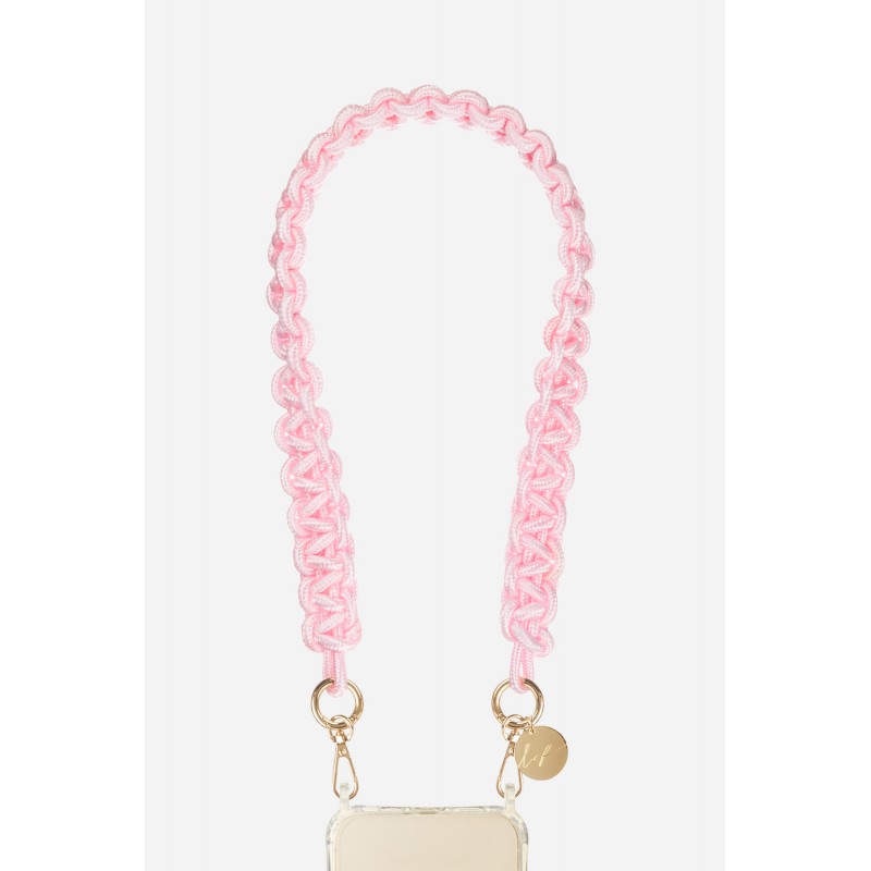 • > High Tech>Gadgets>Chaînes>Lanière Sangle Robby 60 cm rose en cordon tressé avec mousquetons dorés