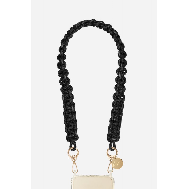 • > High Tech>Gadgets>Chaînes>Lanière Sangle Robby 60 cm noir en cordon tressé avec mousquetons dorés