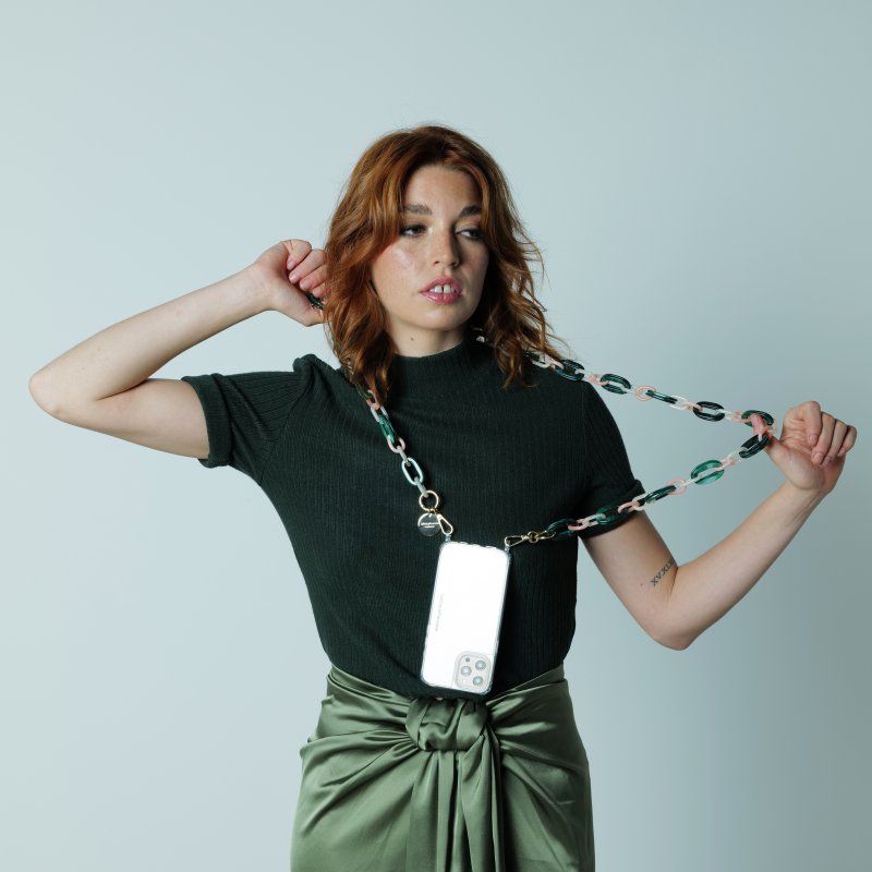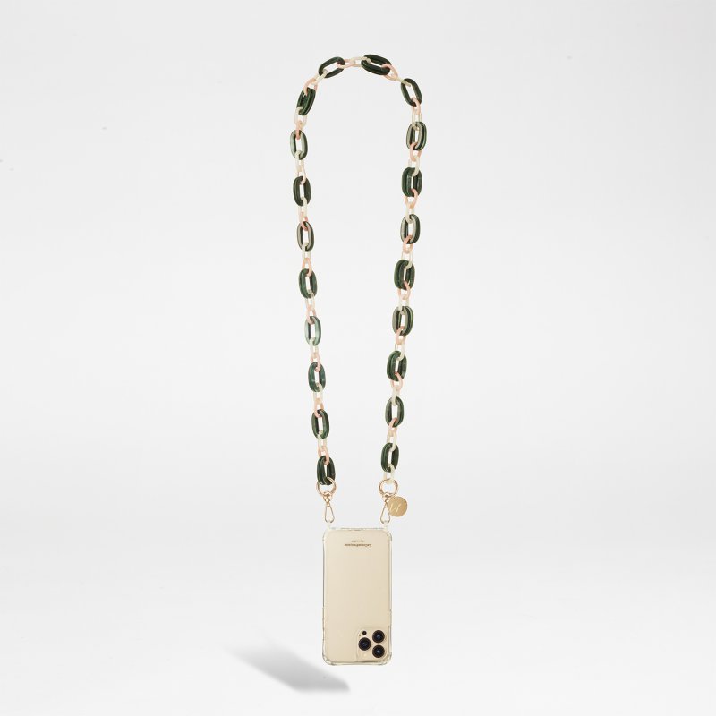 L'accessoire incontournable ! Plus besoin de chercher votre téléphone au fond du sac ou sur votre bureau, il vous suit de partout.Parfait pour avoir les mains libres tout en faisant autres choses, nos chaînes peuvent être portées en bandoulière ou en collier.Nos chaînes bijoux mesurent 120 cm, composées de résine ultra résistante elles donneront une touche chic à vos tenues.Vous pouvez retirer la chaîne en toute simplicité et à tout moment, et l'échanger comme vous le souhaitez au grès de vos tenues et vos envies.Vous avez la possibilité d’adapter votre coque avec les différentes chaines que nous proposons où garder un style plus sobre avec une lanière de votre choix.La chaîne est livrée dans un pochon en coton réutilisable.