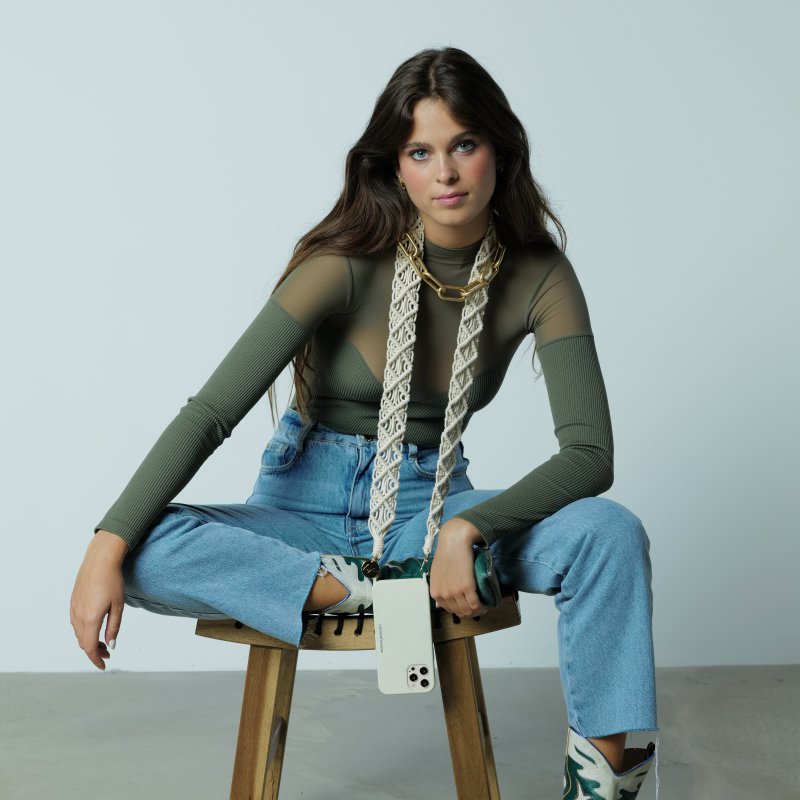 • > High Tech>Gadgets>Chaînes>Chaîne bijoux Eve avec mousquetons dorés de 120 cm en macramé beige
