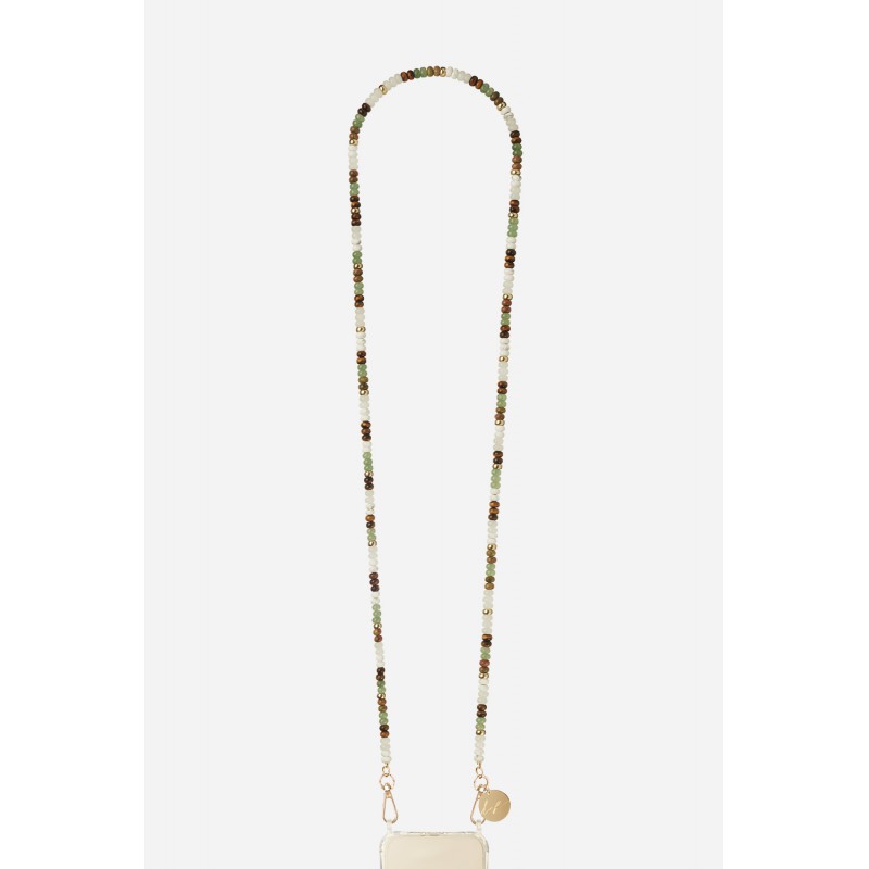 L'accessoire incontournable ! Plus besoin de chercher votre téléphone au fond du sac ou sur votre bureau, il vous suit de partout.Parfait pour avoir les mains libres tout en faisant autres choses, nos chaînes peuvent être portées en bandoulière ou en collier.Nos chaînes bijoux mesurent 120 cm, composées de perles naturels de boulier, elles donneront une touche chic à vos tenues.Vous pouvez retirer la chaîne en toute simplicité et à tout moment, et l'échanger comme vous le souhaitez au grès de vos tenues et vos envies.Vous avez la possibilité d’adapter votre coque avec les différentes chaines que nous proposons où garder un style plus sobre avec une lanière de votre choix.La chaîne est livrée dans un pochon en coton réutilisable.