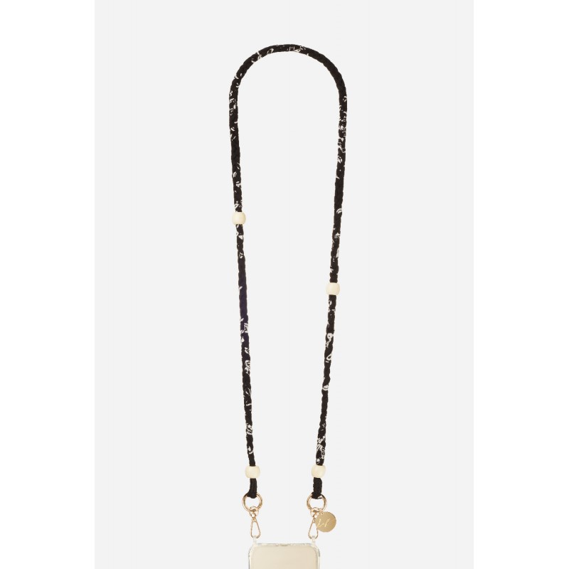 • > High Tech>Gadgets>Chaînes>Chaîne bijou Della Bandana noir avec perles en bois blanches et mousquetons dorés