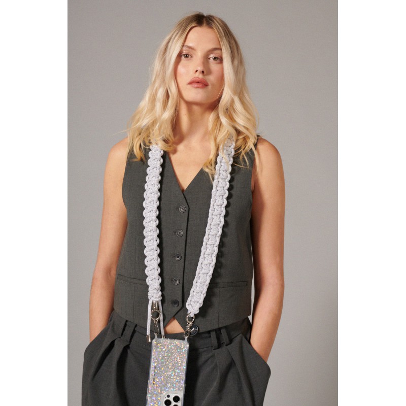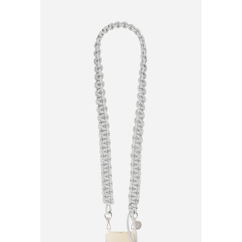 • > High Tech>Gadgets>Chaînes>Lanière Sangle Giulia 120 cm argent avec strass en cordon tressé avec mousquetons argent