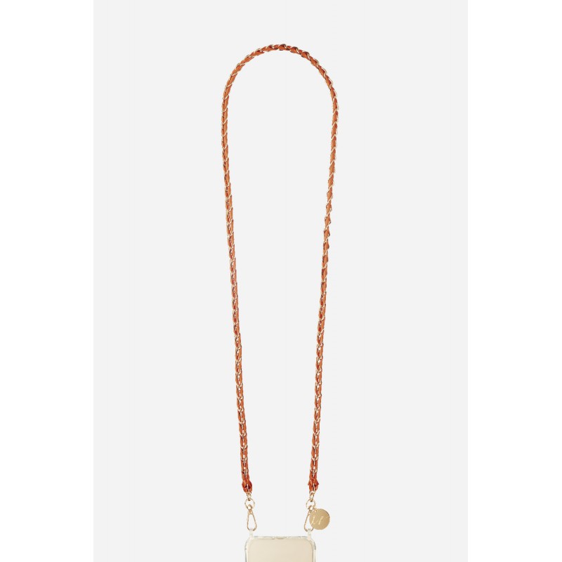 • > High Tech>Gadgets>Chaînes>Chaîne bijoux Lou avec mousquetons dorés de 120 cm en métal ultra résistante camel et Doré