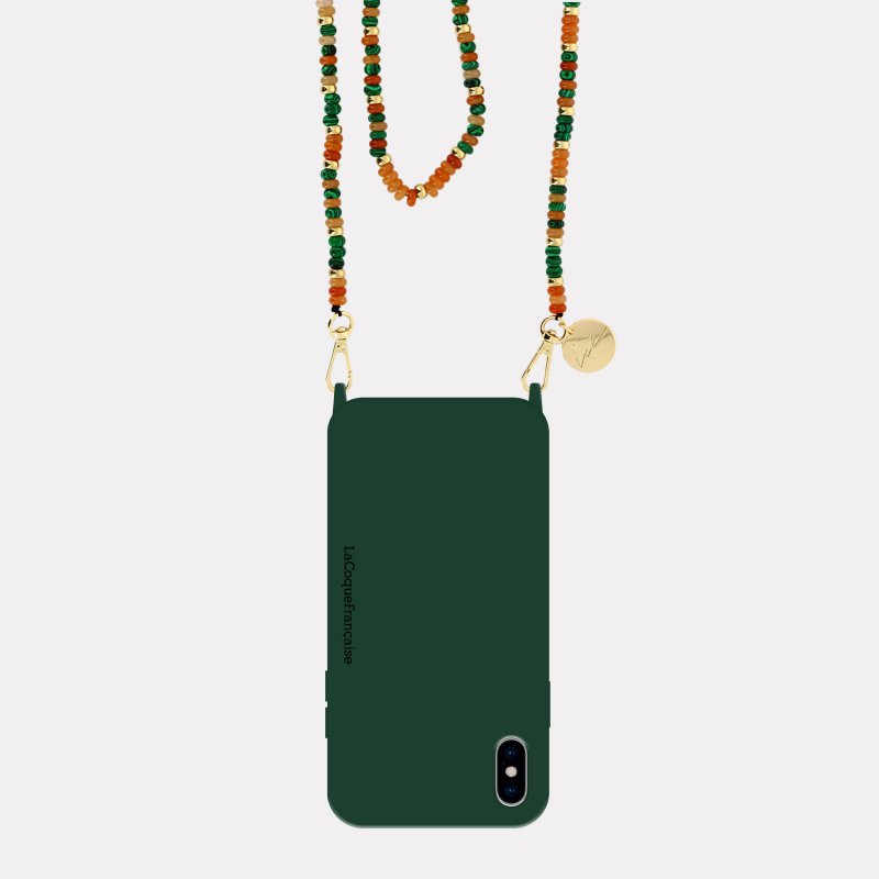 • Coque iPhone X/XS soft touch avec anneaux en silicone Vert forêt