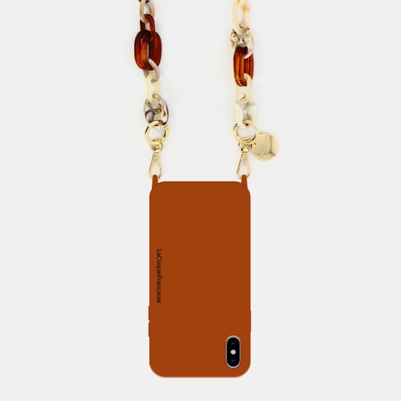 • Coque iPhone X/XS soft touch avec anneaux en silicone Marron