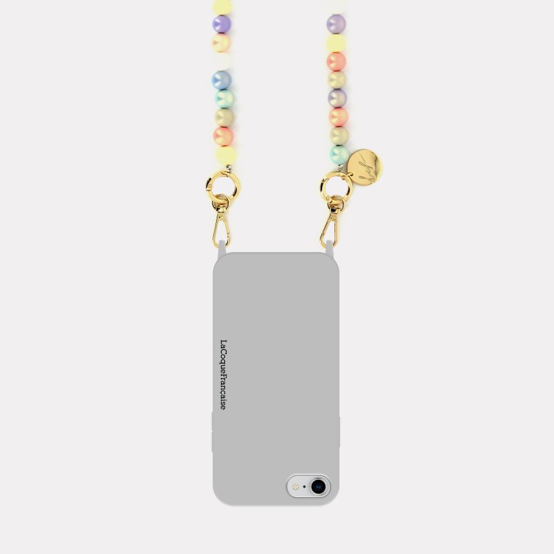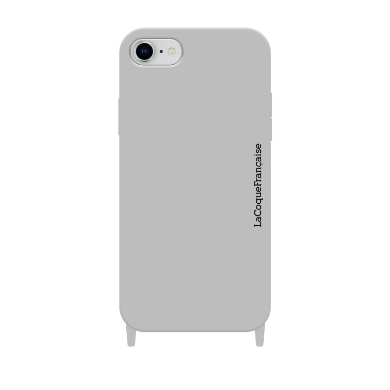 • Coque iPhone 7/8/SE 2020 soft touch avec anneaux en silicone gris