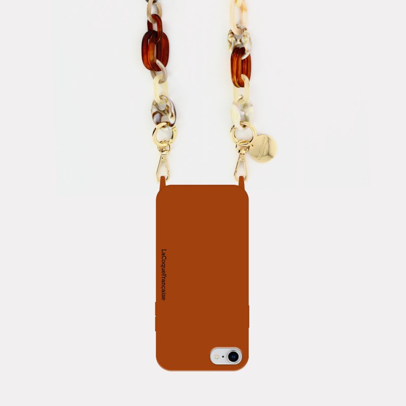 • Coque iPhone 7/8/SE 2020 soft touch avec anneaux en silicone Marron