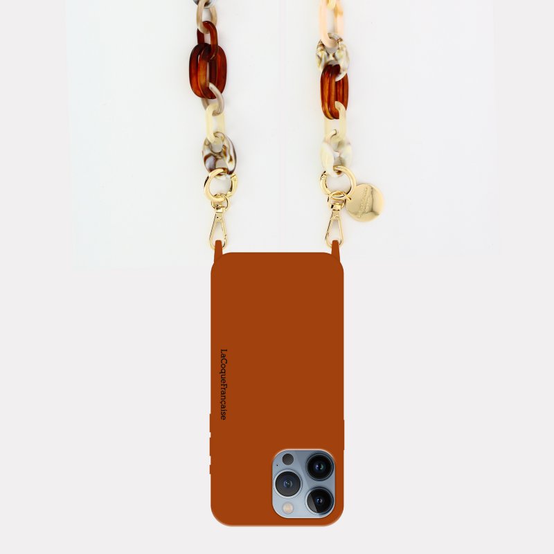 • > High Tech>Gadgets>Coque Anneaux>Coque iPhone 13 Pro soft touch avec anneaux en silicone Marron