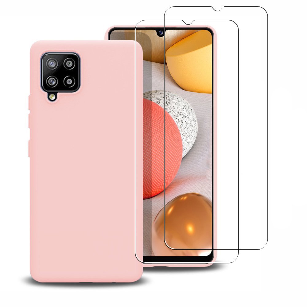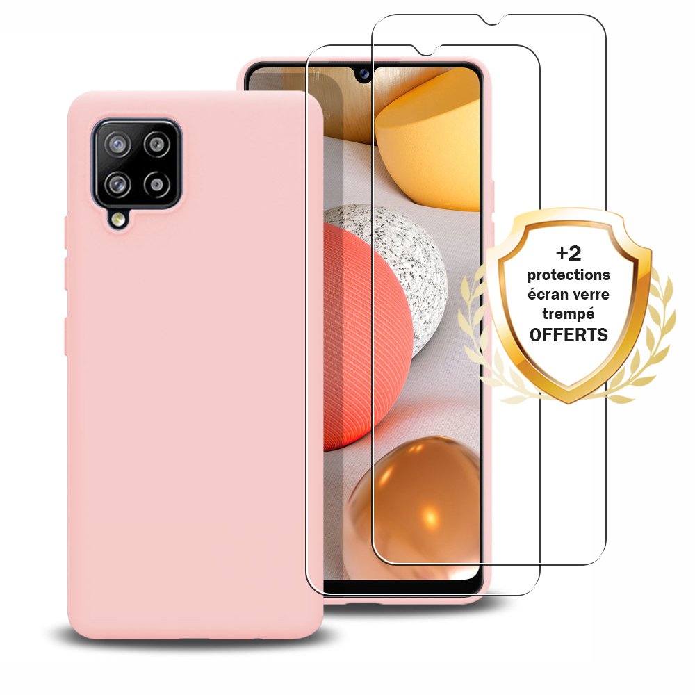 • Coque Samsung Galaxy A42 Silicone liquide Rose + 2 Vitres en Verre trempé Protection écran Antichocs
