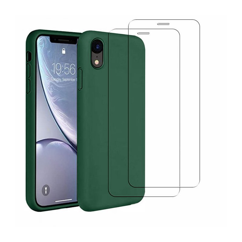 • Coque iPhone XR Silicone liquide Vert Foret + 2 Vitres en Verre trempé Protection écran Antichocs