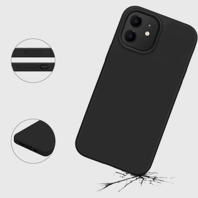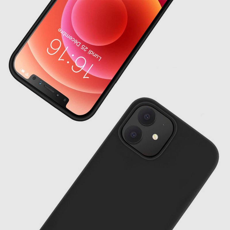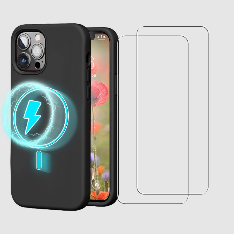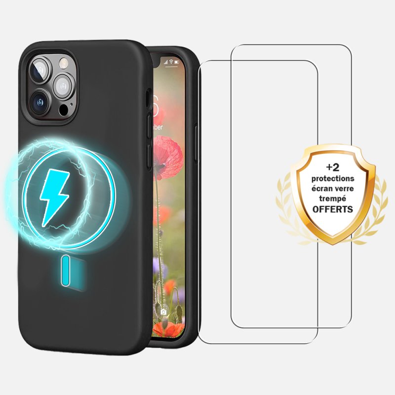 • Coque iPhone 12/12 Pro Noire +2 Vitres en Verre Trempé Silicone liquide Compatible MagSafe