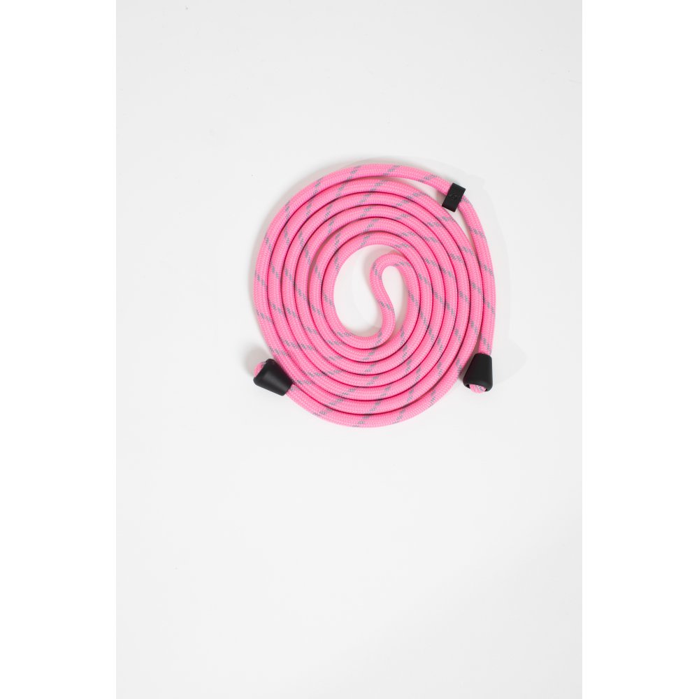 • Lanière cordon Nina en coton tressée avec embout en métal noir mat, coloris rose vif