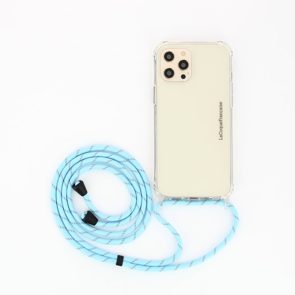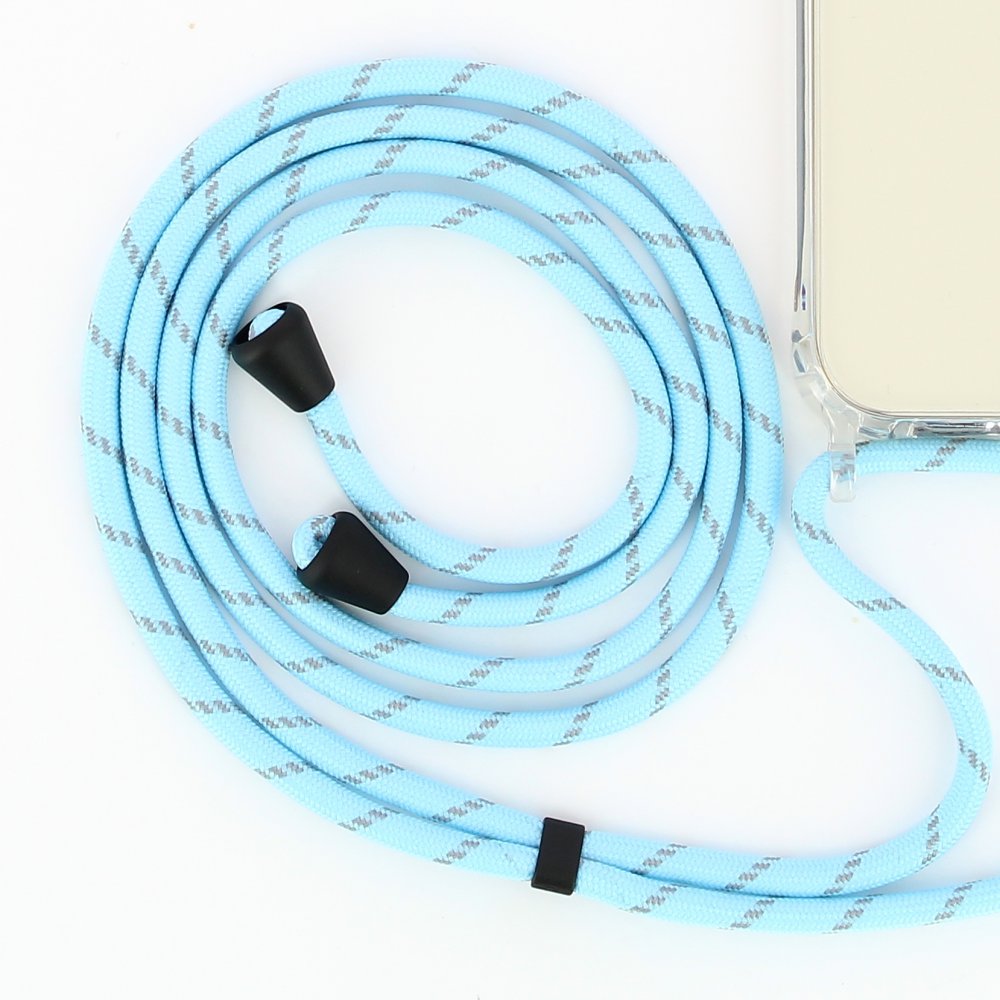 • > High Tech>Gadgets>Cordons>Lanière cordon Lilou en coton tressée avec embout en métal noir mat, coloris bleu ciel et gris