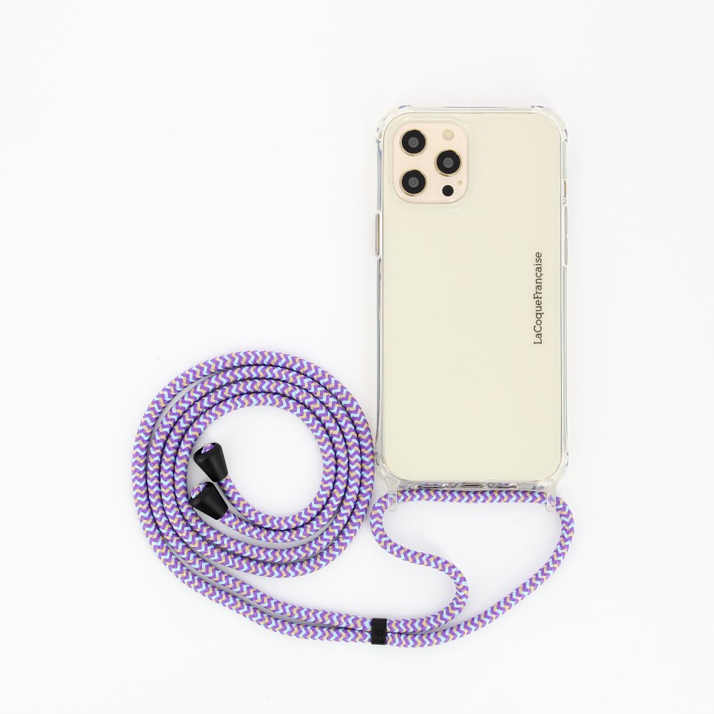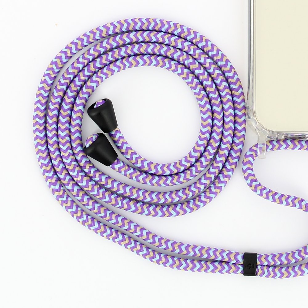 • > High Tech>Gadgets>Cordons>Lanière cordon Lilou en coton tressée avec embout en métal noir mat, coloris violet, beige et bleu
