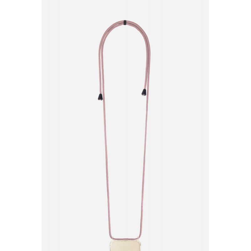 • Lanière cordon Nina en coton tressée avec embout en métal noir mat, coloris pêche metalisé