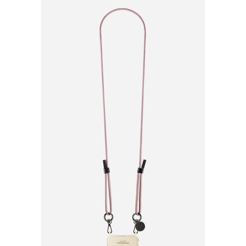 • Lanière cordon Liam en coton tressée avec mousquetons noir metallisé, coloris rose et gris
