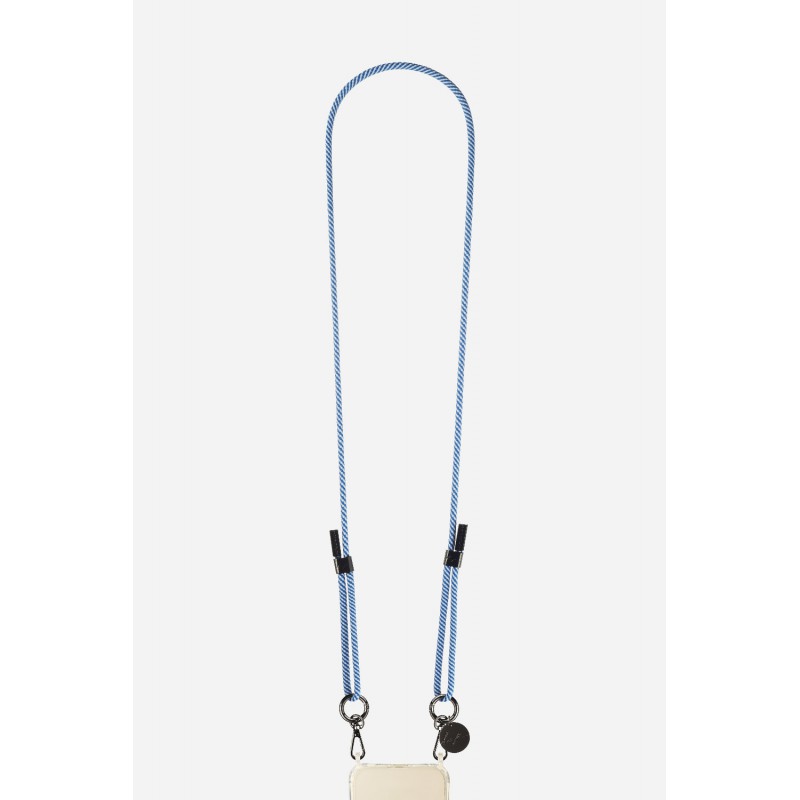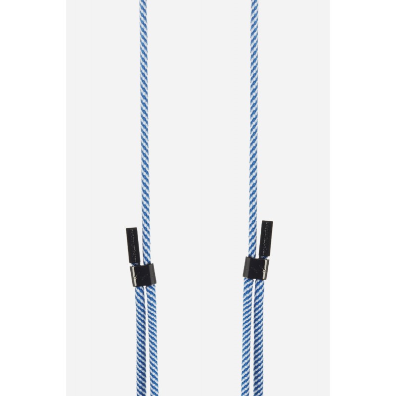 Lanière cordon Liam en coton tressée avec mousquetons noir metallisé, coloris bleu et blanc