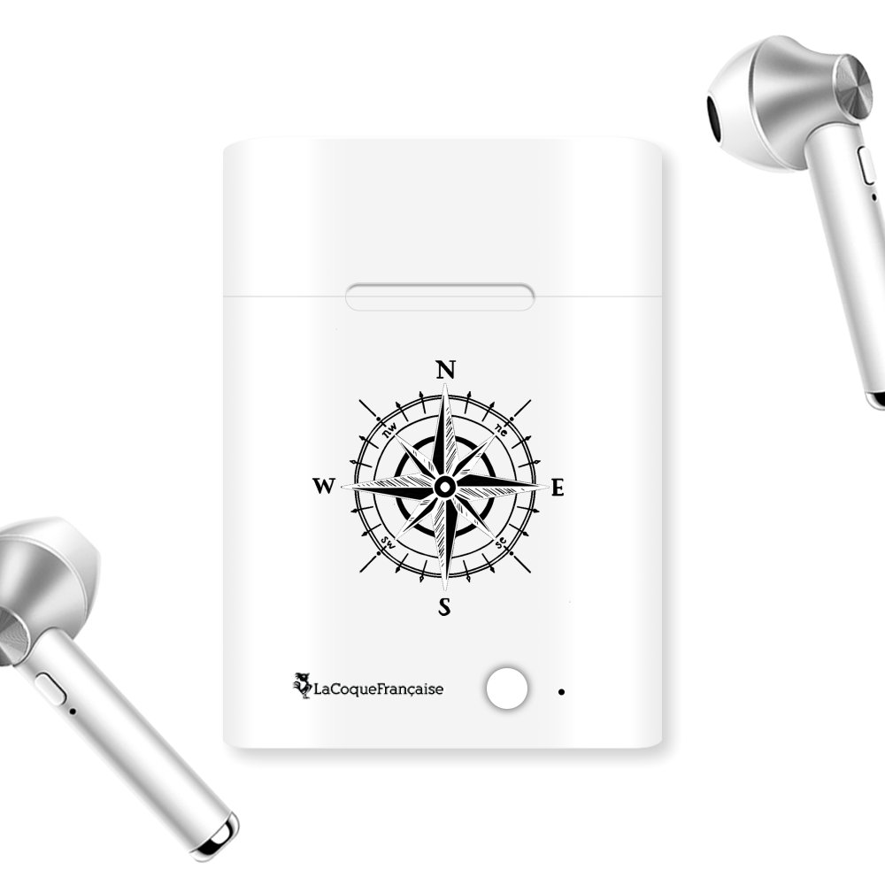• Ecouteurs Sans Fil Bluetooth Argent argent Boussole Ecriture Tendance et Design La Coque Francaise.