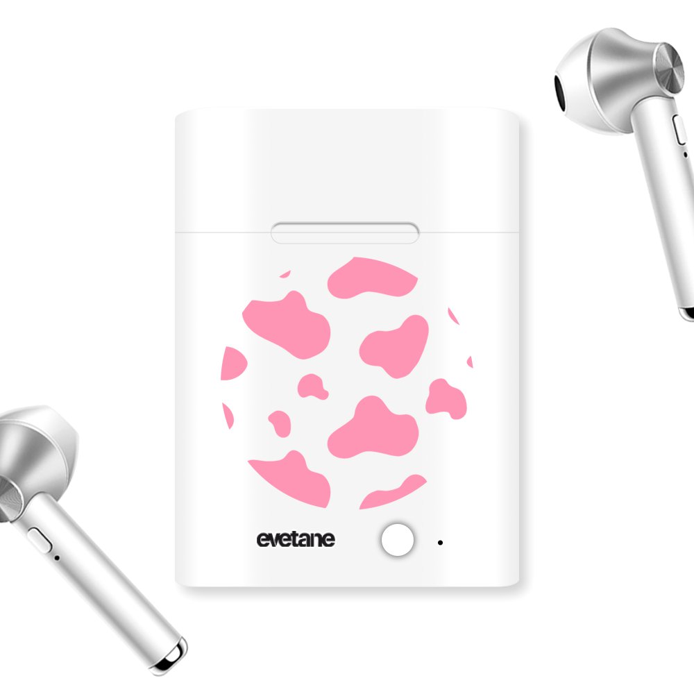 • Ecouteurs Sans Fil Bluetooth Argent argent Cow print pink Ecriture Tendance et Design Evetane.