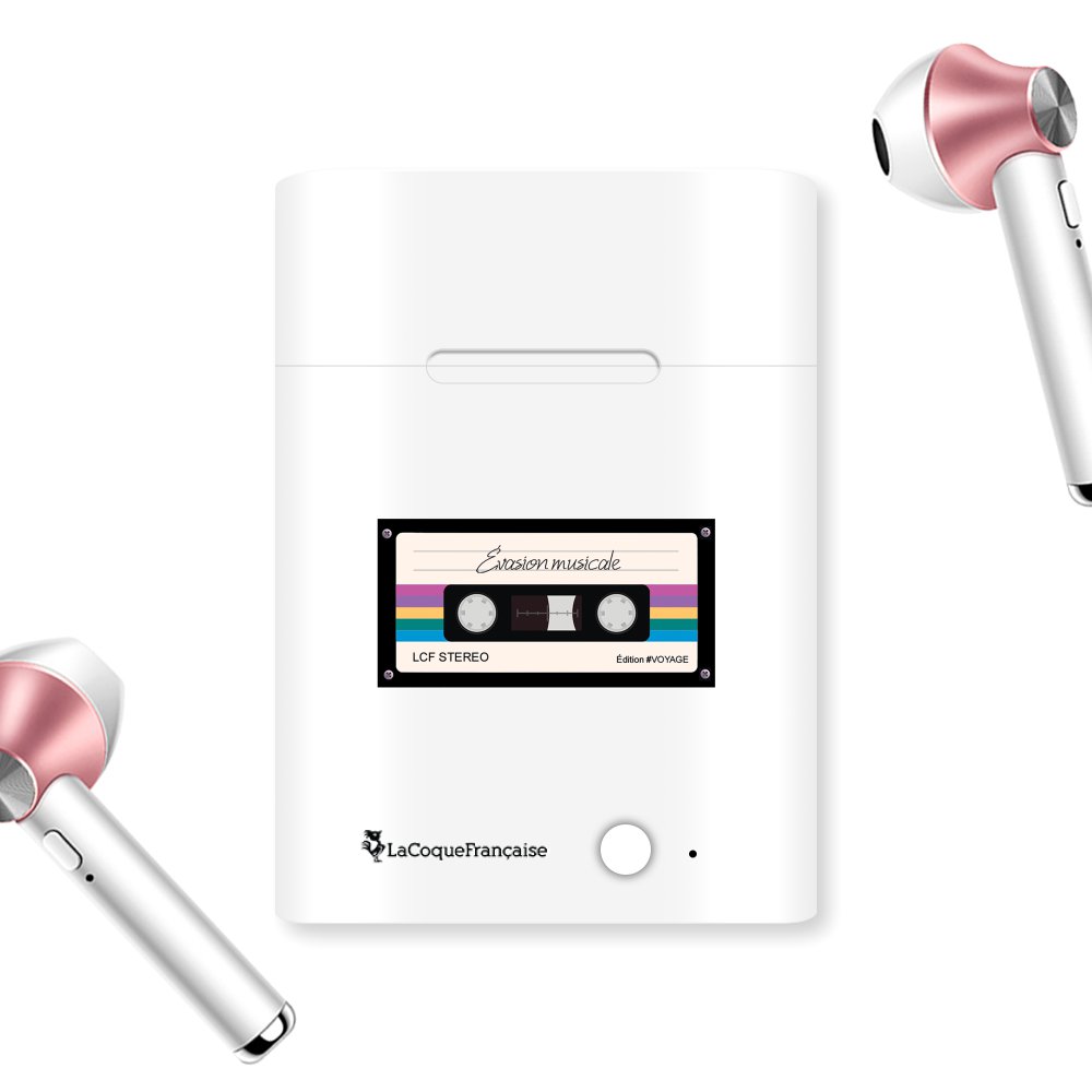 Ecouteurs Sans Fil Bluetooth Rose Gold Cassette Vintage Evasion Ecriture Tendance et Design La Coque Francaise