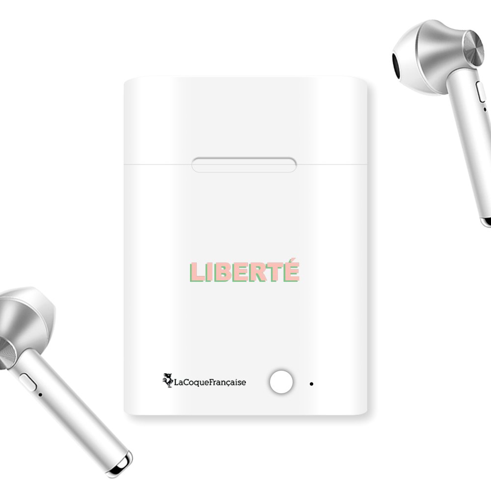 • > High Tech>Audio>Ecouteurs Bluetooth>Ecouteurs Sans Fil Bluetooth Argent argent Liberté rose et vert Ecriture Tendance et Design La Coque Francaise.