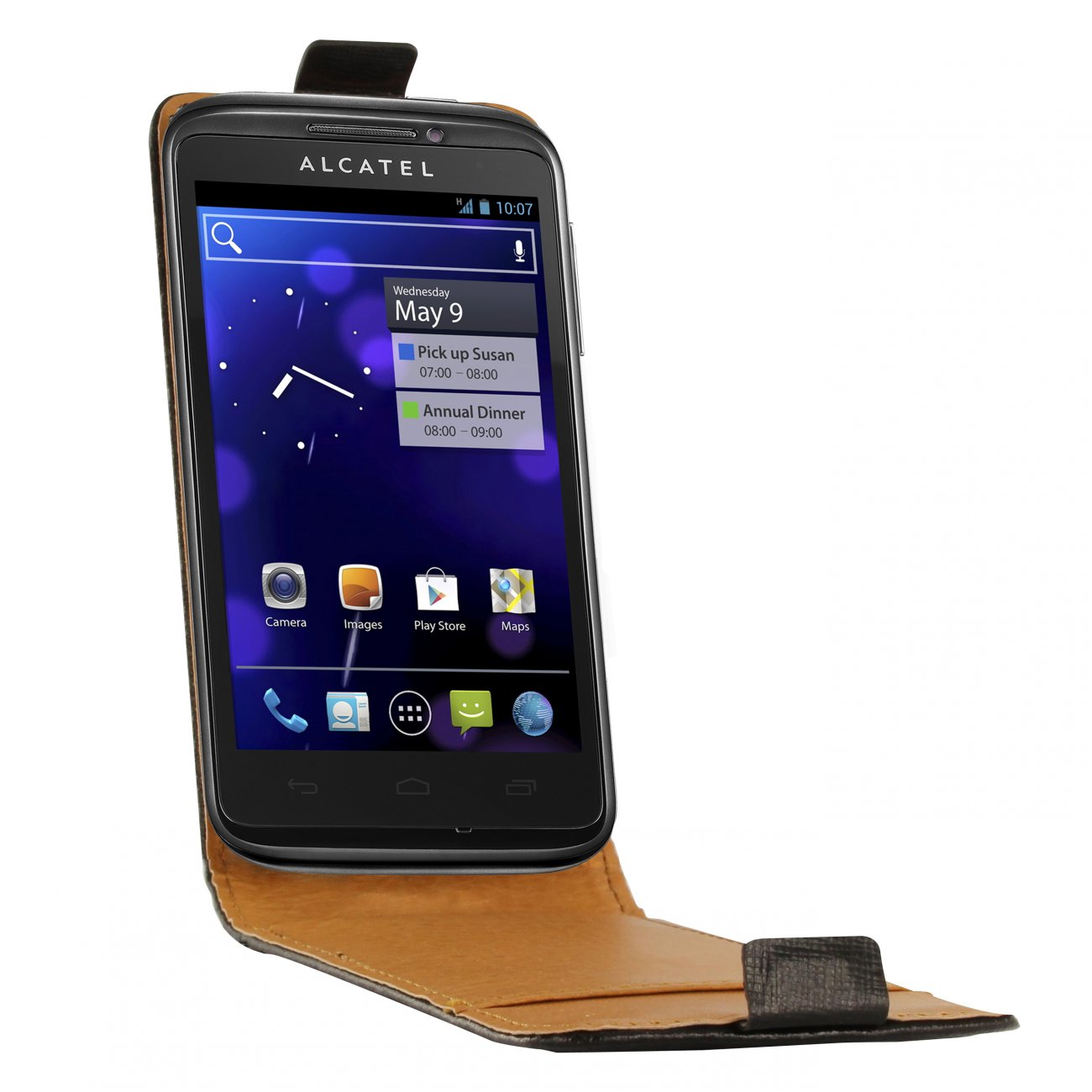 • > High Tech>Etuis>SWISS CHARGER Etui cuir noir véritable pour Alcatel OT-993