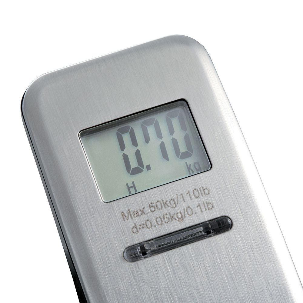 Pèse-bagage digital, permet de connaître le poids exact de vos bagages, capacité 50 kg, précision 50 g, maintien de l'affichage du poids après la pesée, indication de surcharge et de batterie.