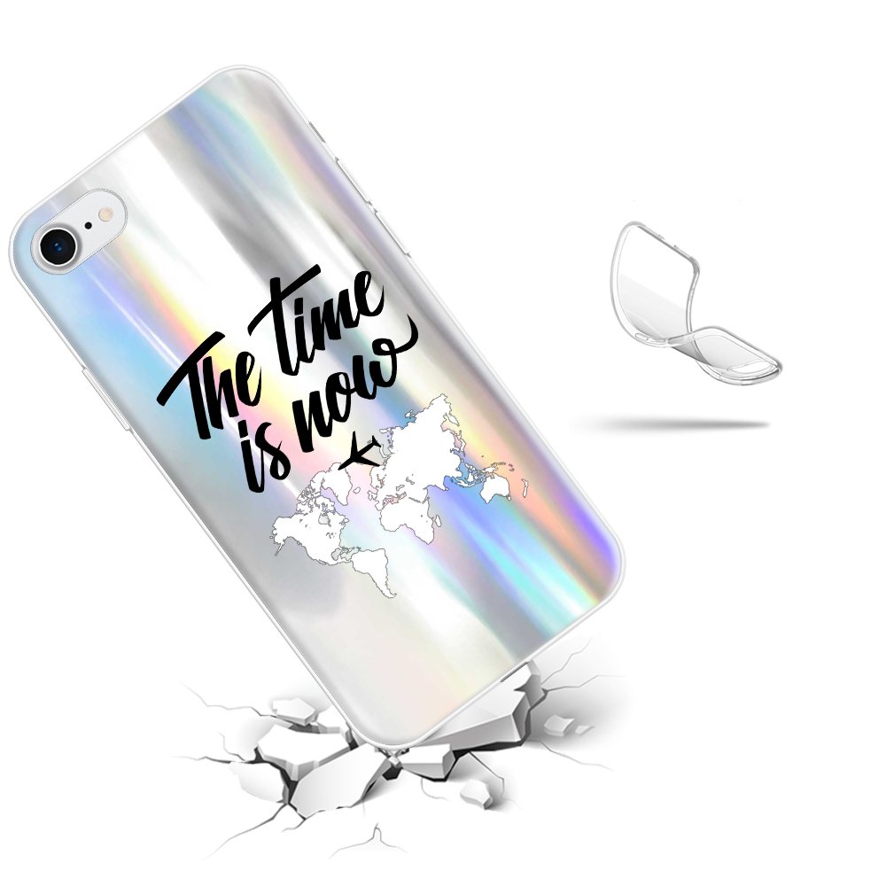 Coque iPhone 7/8/ iPhone SE 2020 silicone fond holographique The time is Now Design Evetane