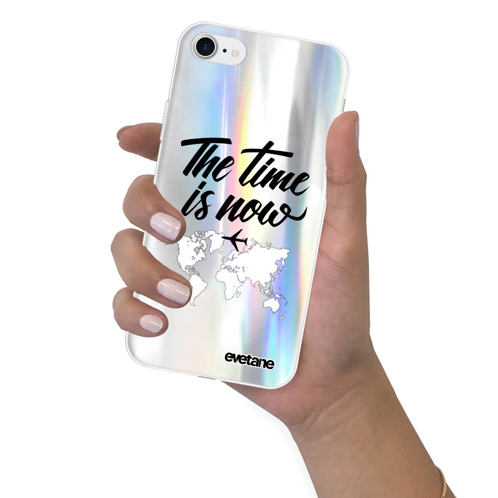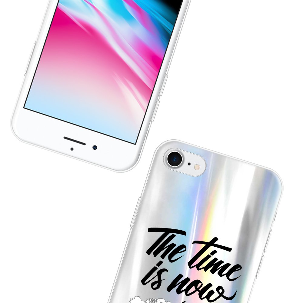 • Coque iPhone 7/8/ iPhone SE 2020 silicone fond holographique The time is Now Design Evetane