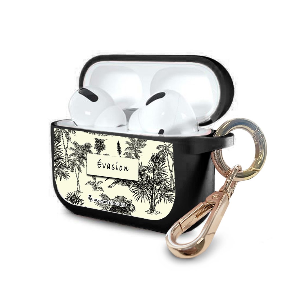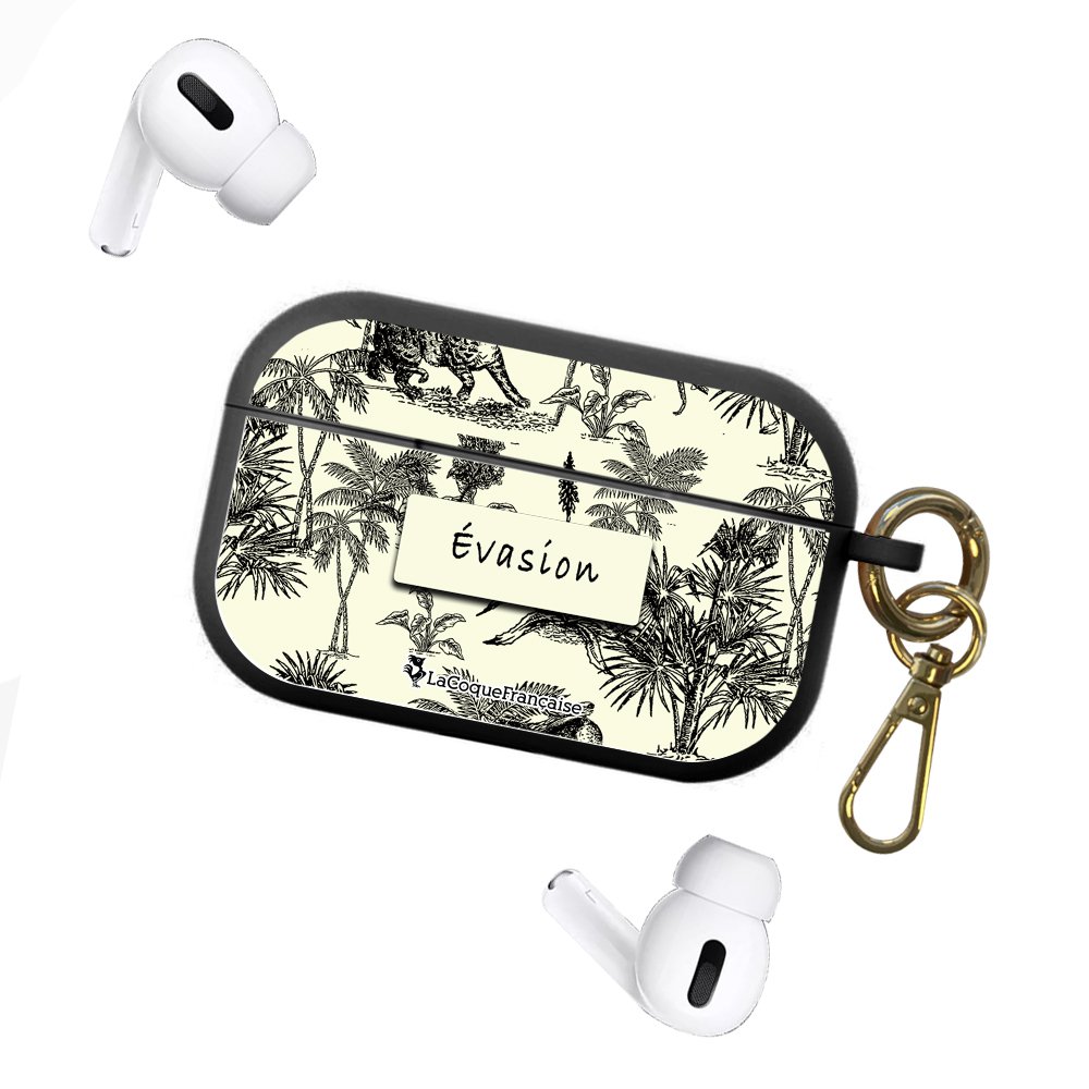 Housse pour Airpods Pro silicone liquide noir Botanic Evasion Motif Ecriture Tendance La Coque Francaise