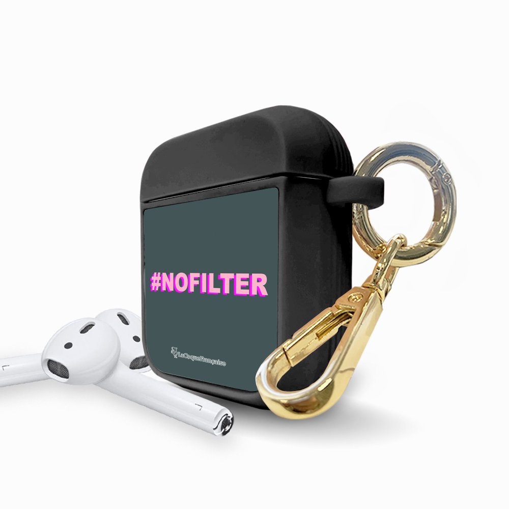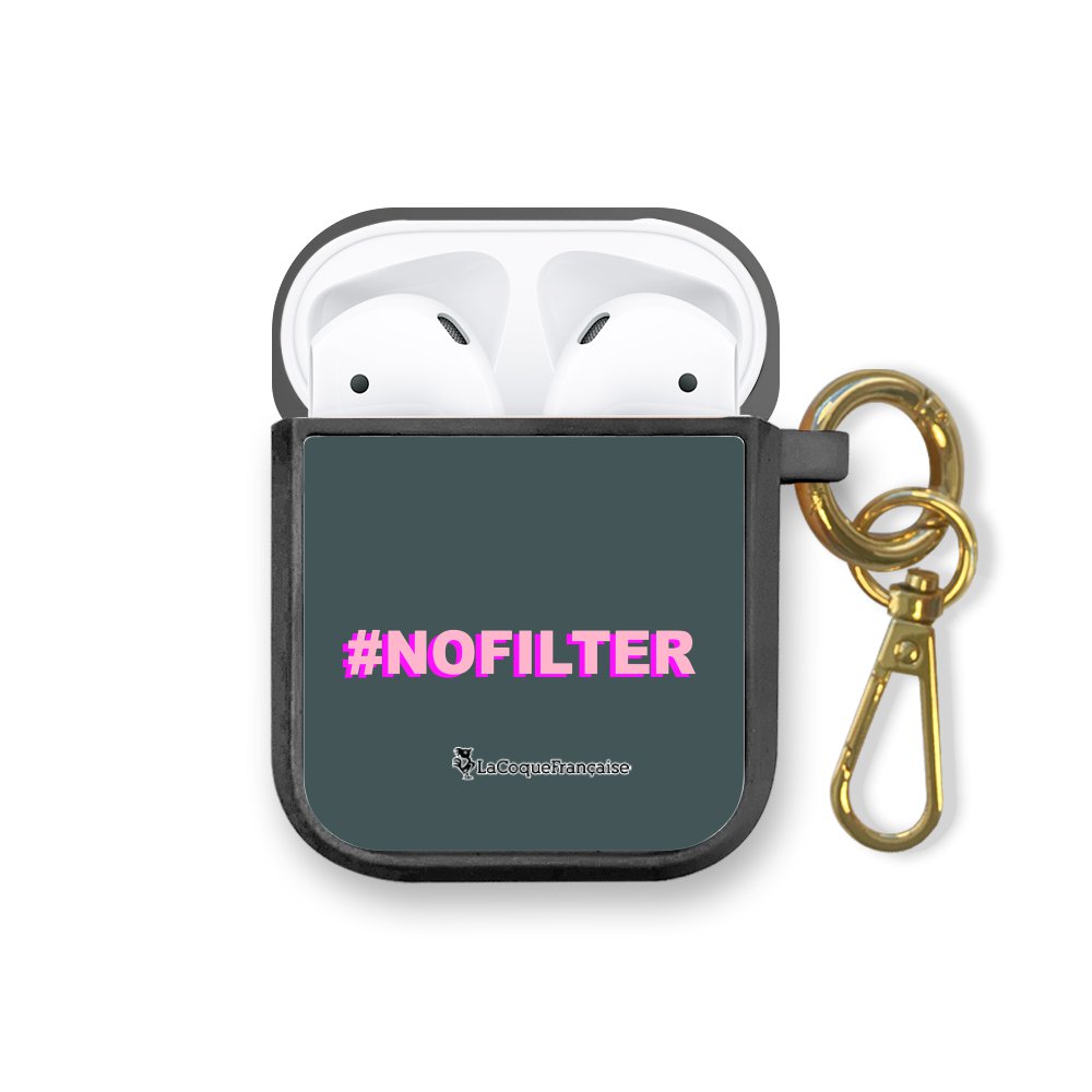 Housse pour airpods silicone liquide noir No Filter rose et fushia Motif Ecriture Tendance La Coque Francaise