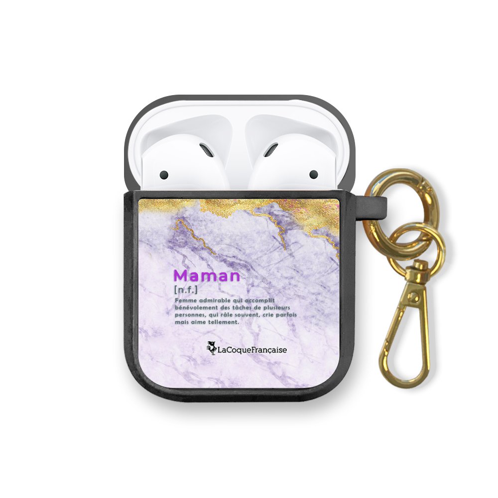 Housse pour airpods silicone liquide noir Maman Marbre Motif Ecriture Tendance La Coque Francaise