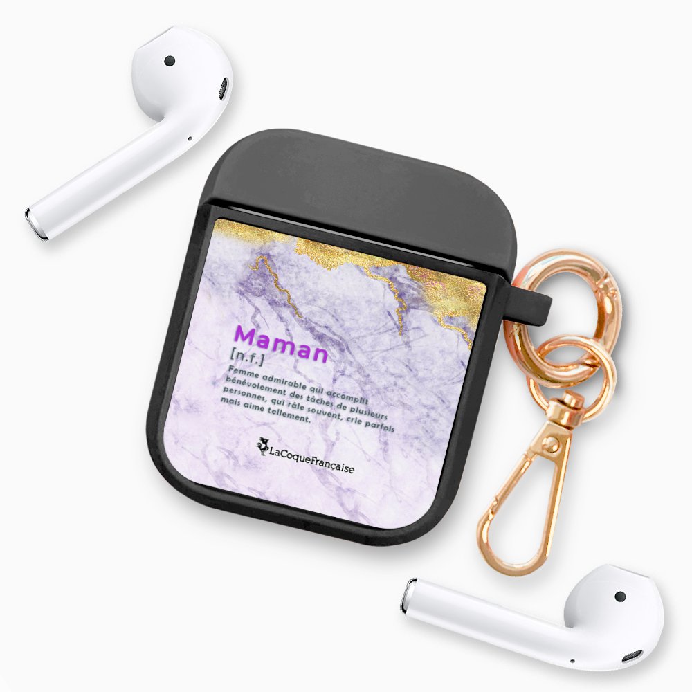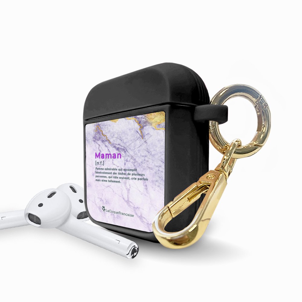 • > High Tech>Audio>Accessoires Airpod>Housse pour airpods silicone liquide noir Maman Marbre Motif Ecriture Tendance La Coque Francaise