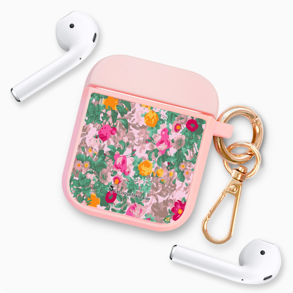 Housse pour Airpods silicone liquide rose Fleurs Beige et Rose Motif Ecriture Tendance La Coque Francaise