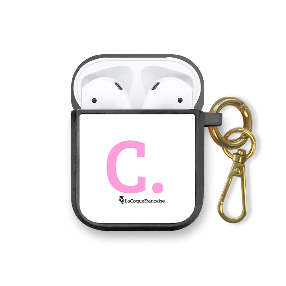 Housse pour airpods silicone liquide noir Initiale C Motif Ecriture Tendance La Coque Francaise